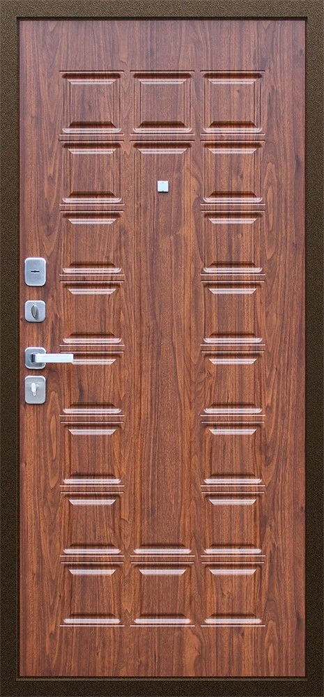 Надежная входная Дверь Спартак Орех темный премиум класса по цене 33 719 руб. Большая толщина стали защитит от проникновения в ваш дом, квартиру или коттедж. Используется очень качественная фурнитура: замки, цилиндры, ручки, защелки. Покрытие и отделка двери изготовлено под внимательным контролем производителя. Дверь имеет долгий срок службы и гарантию.
